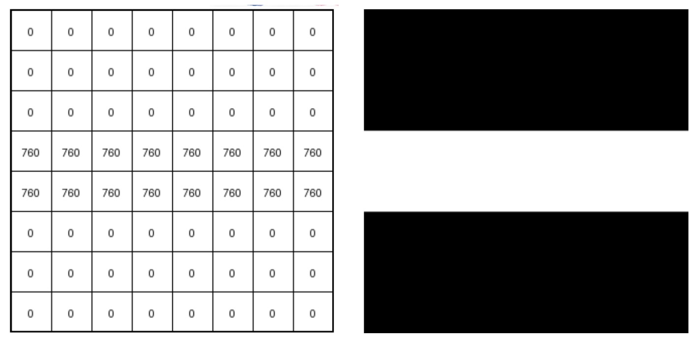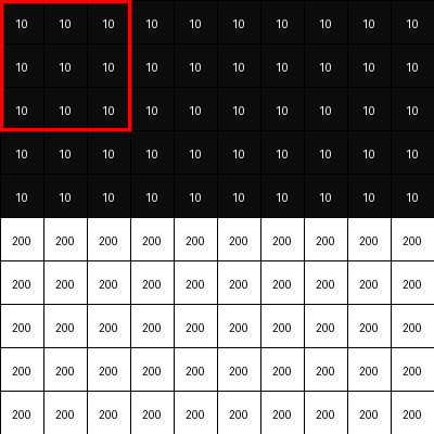 Let's say we have this simple image below with a horizontal edge and we see the 3x3 filter moving across the images.
