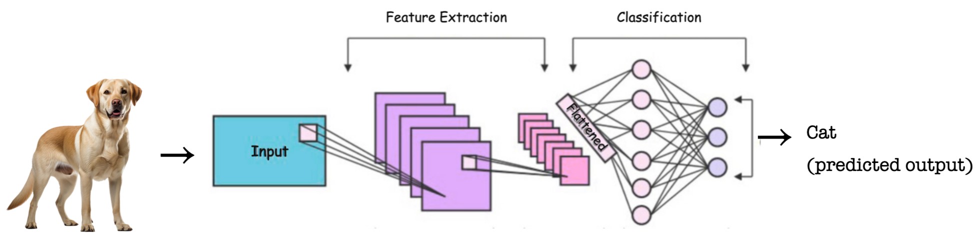 - Calculate Loss/Error = CrossEntropy(predicted=Cat, actual=Dog)