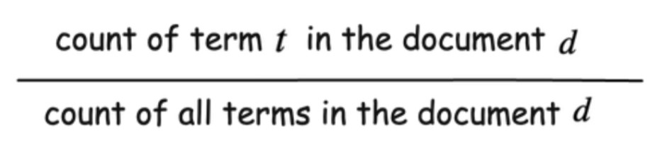 - Frequency of a word in a document (TF -term frequency)