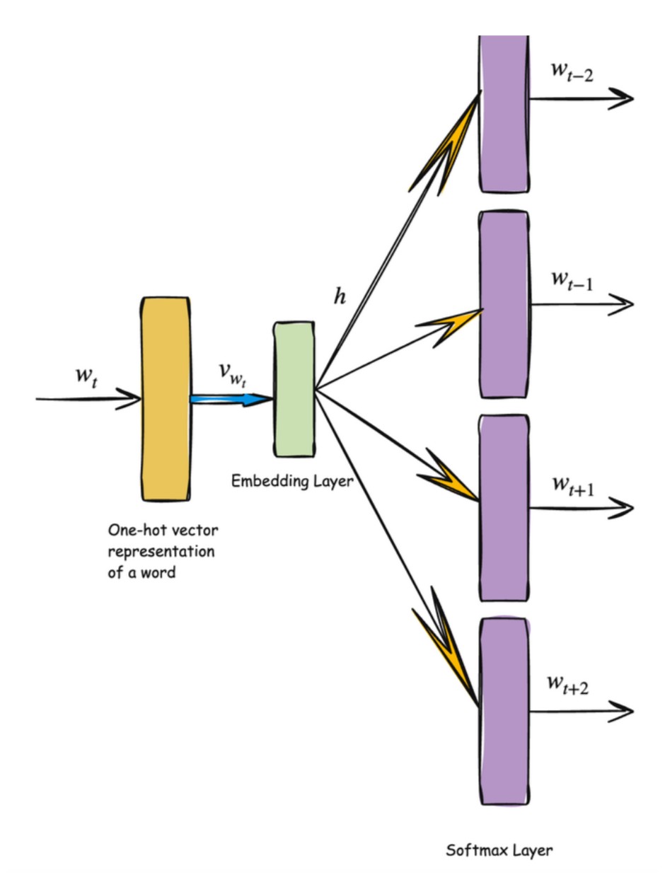 One thing to mention here, predicting context words or centre word is a fake problem we are solving here. And as a result of that we will be getting our word embeddings from the Embedding Layer(shown later).