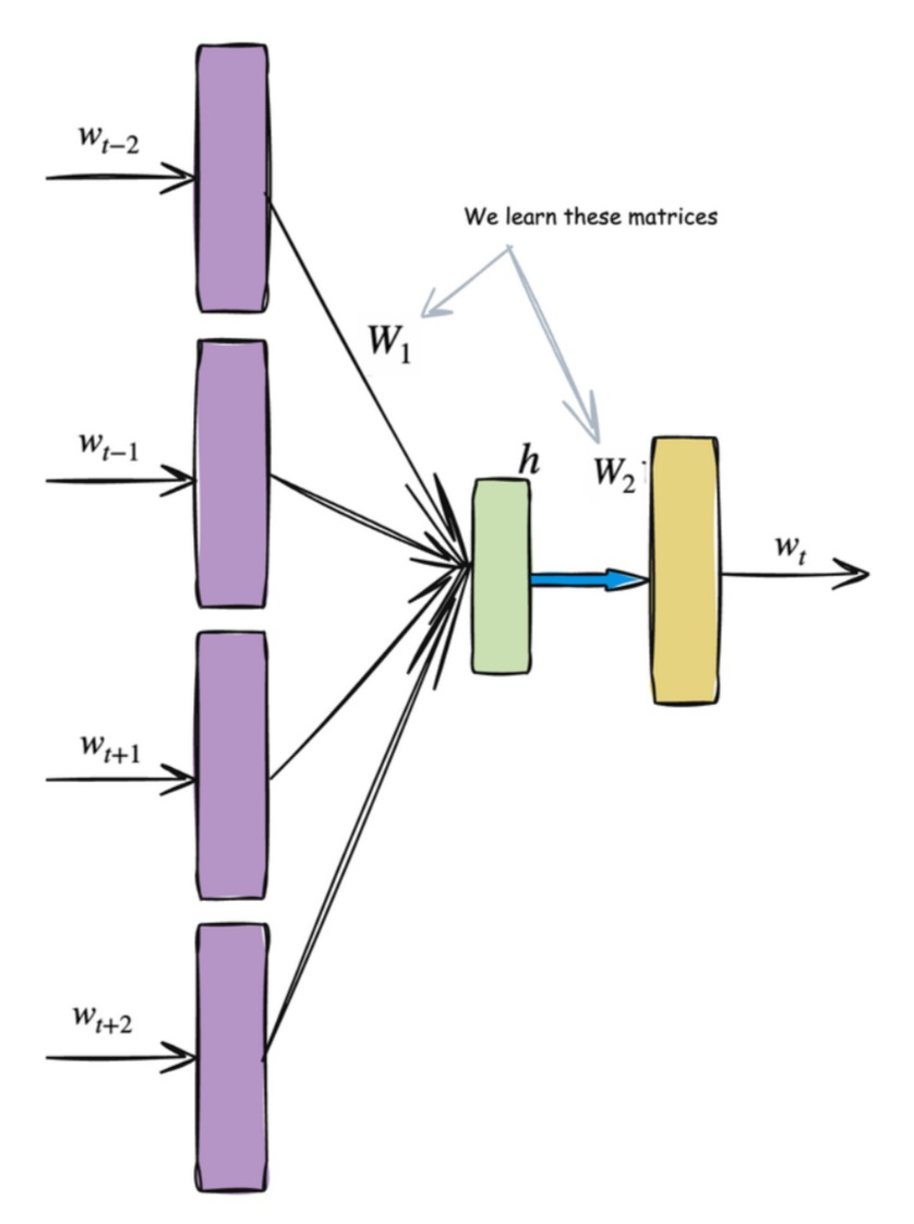 The number of words in the context on the left size is equal to the number of words on the right side. There are two main models here that we will train and as a result of that we will get our word embeddings.