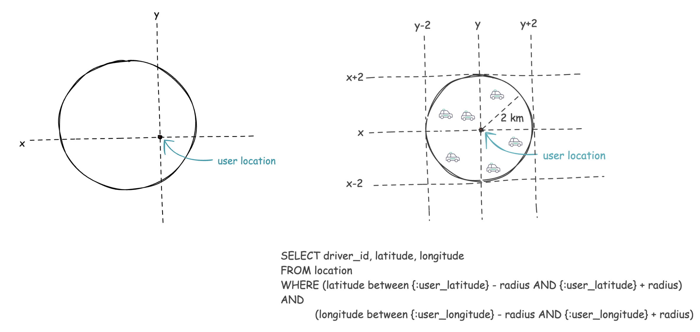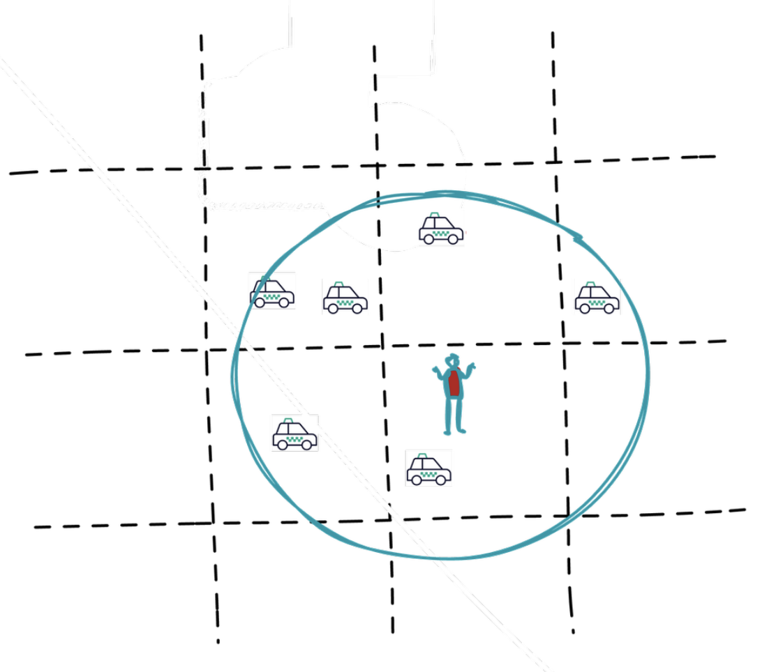 user sends src location let's say the service will find drivers within 2 km range